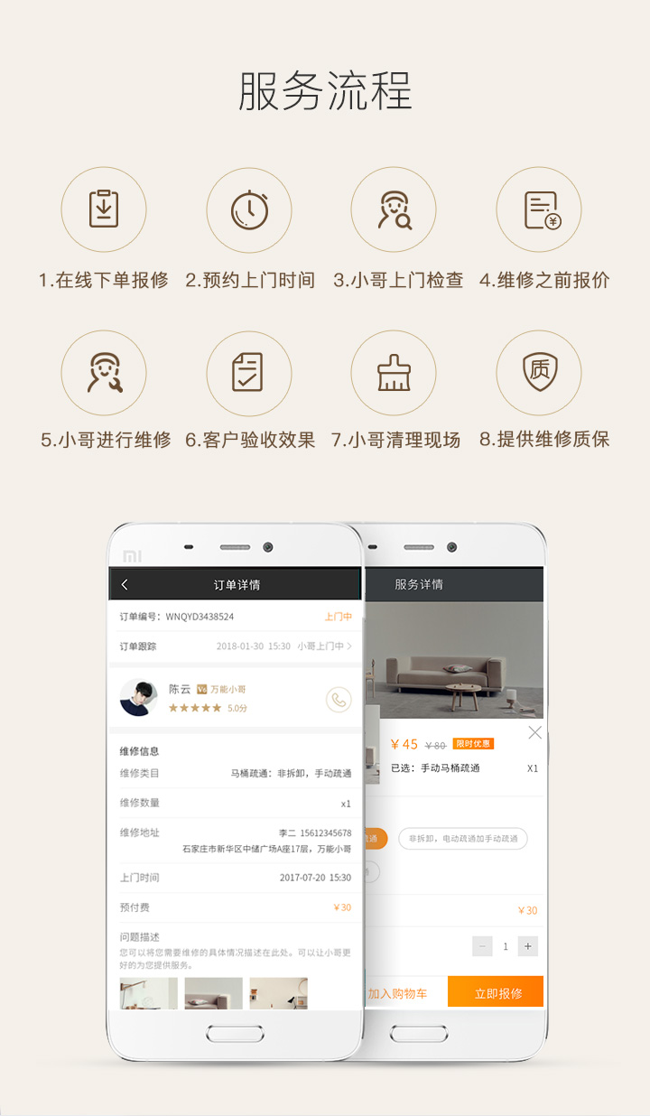 基于地理位置的预约下单,提供方便快捷的上门维修服务。